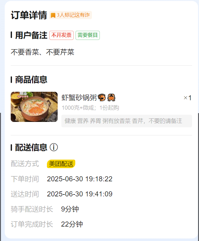 砂锅粥做法稠度是正常的,用户没有备注特殊要求,如果用户备注需要更加稠一点,商家这边完全可以按备注出餐的,申请屏蔽这条评价