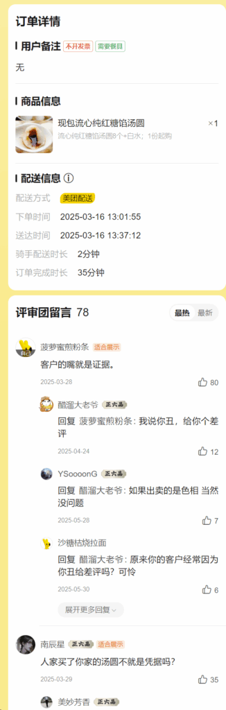 我们家汤圆都是选用优质的糯米粉,新鲜的馅料,现场制作,现包现煮现卖,很抱歉,这次的口味没能让你满意,换一种口味尝尝,肯定有你适合的味道!