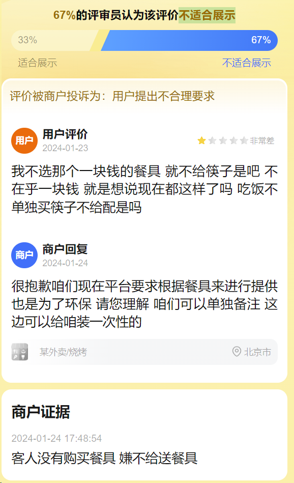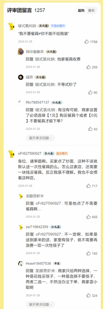 我不选那个一块钱的餐具 就不给筷子是吧 不在乎一块钱 就是想说现在都这样了吗 吃饭不单独买筷子不给配是吗