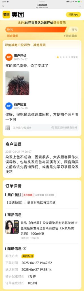 买的黑色染膏,染了变红了 2025年8月12日 适合展示 84%的评审员认为该评价适合展示 用户评价2025-06-27买的黑色染膏,染了变红了商户回复2025-06-28你好,很抱歉给你造成困扰,方便拍个照片看一下吗