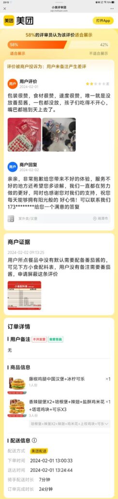 包装很赞,食材很赞,速度很赞,唯一就是没放番茄酱,一包都没放,孩子们吃得不开心,嘴巴都翘到天上去了。