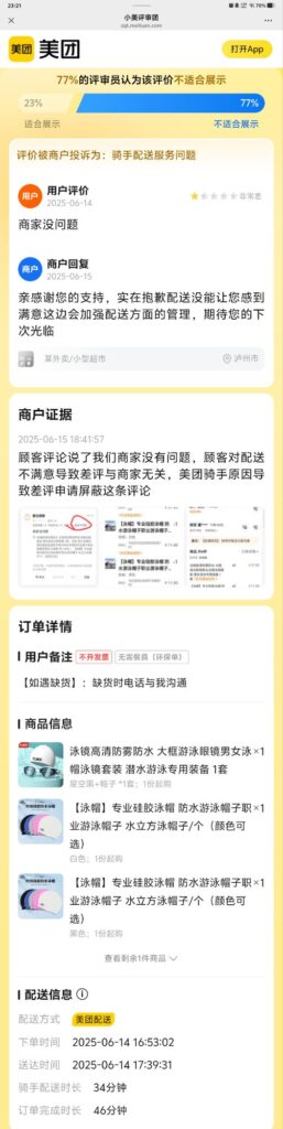 商家没问题 2025年8月12日 不适合展示 77%的评审员认为该评价不适合展示 用户评价2025-06-14商家没问题商户回复2025-06-15亲感谢您的支持,实在抱歉配送没能让您感到满意这边会加强配送方面的管理,期待您的下次光临