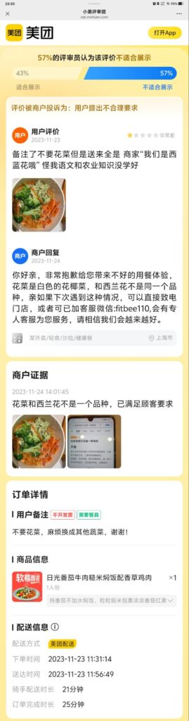 57%的评审员认为该评价不适合展示