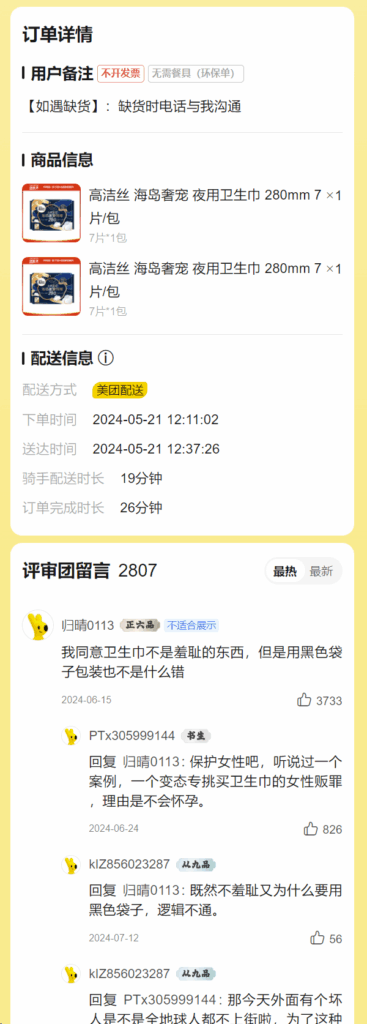 女性歧视吗???凭什么把姨妈巾装在黑色袋子里?有什么见不得人的