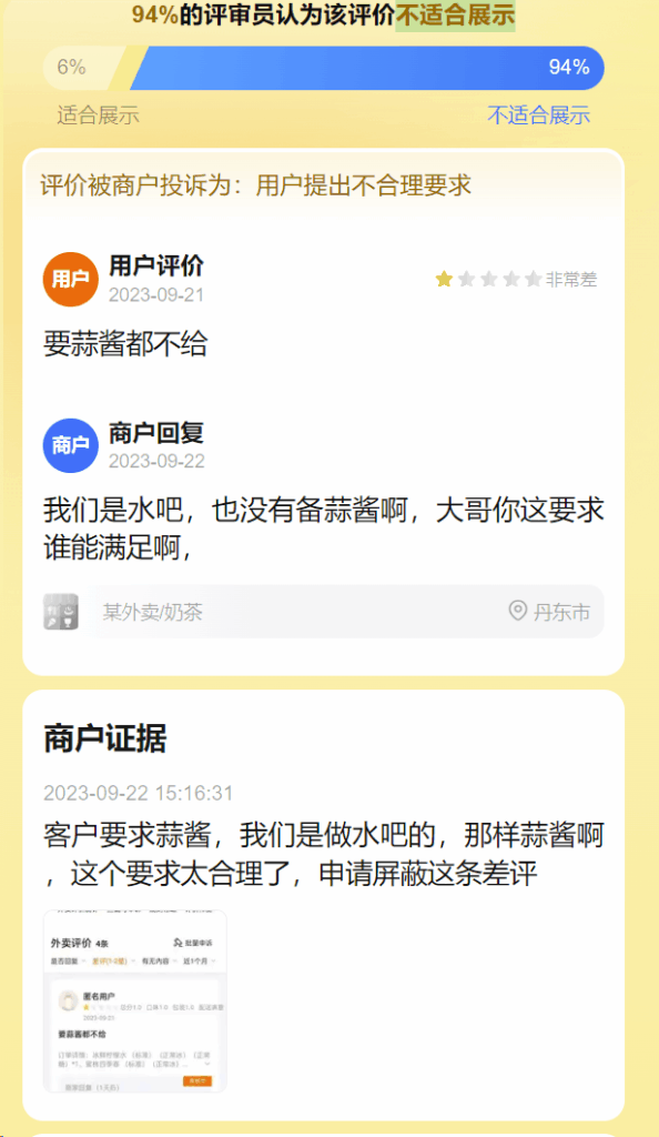 客户要求蒜酱,我们是做水吧的,那样蒜酱啊,这个要求太合理了,申请屏蔽这条差评