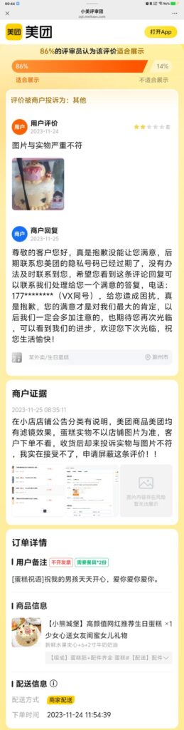 尊敬的客户您好,真是抱歉没能让您满意,后期联系您美团的隐私号码已经过期了,没有办法及时联系到您,希望您看到这条评论回复可以联系我们处理给您一个满意的答复,电话:177********(VX同号),给您造成困扰,真是抱歉,您的满意才是对我们最大的肯定,以后我们一定会多加注意的,也期待您再次光临,可以看到我们的进步,欢迎您下次光临,祝您生活愉快!