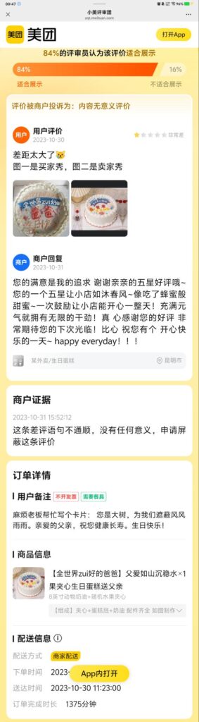 84%的评审员认为该评价适合展示