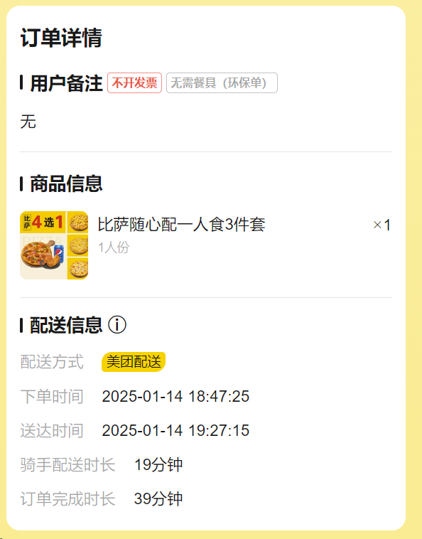 2025年8月13日 不适合展示 用户评价 2025-01-14 一般 我可乐没要吸管,给我装了个吸管,搞不懂 商户回复 2025-01-15 亲爱的顾客,非常抱歉影响您的用餐,感谢您的提醒与反馈,您反馈的问题我们会在下次服务中改进,期待您再次的光临!