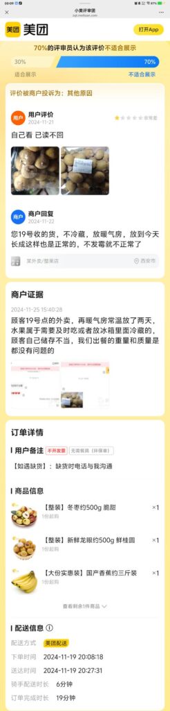70%的评审员认为该评价不适合展示