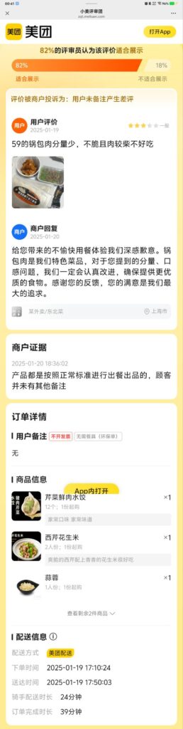 82%的评审员认为该评价适合展示