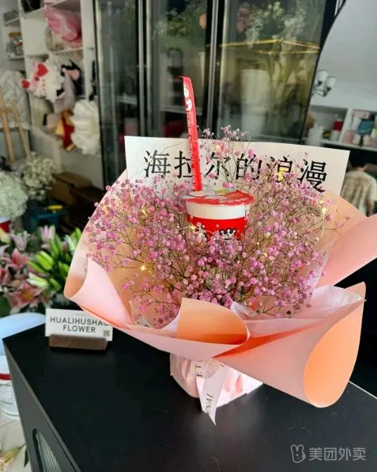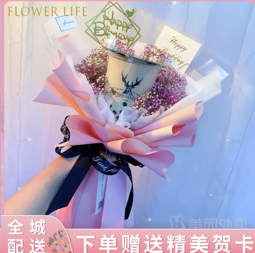 #【秋天的第一杯奶茶】奶茶花束1束满天星搭配奶茶(品牌随机)春天的第一束花送女友送爱人# 啥也不想说了,无语,连个花都没有,还给了个蜜雪冰城,价格58元,无语了,