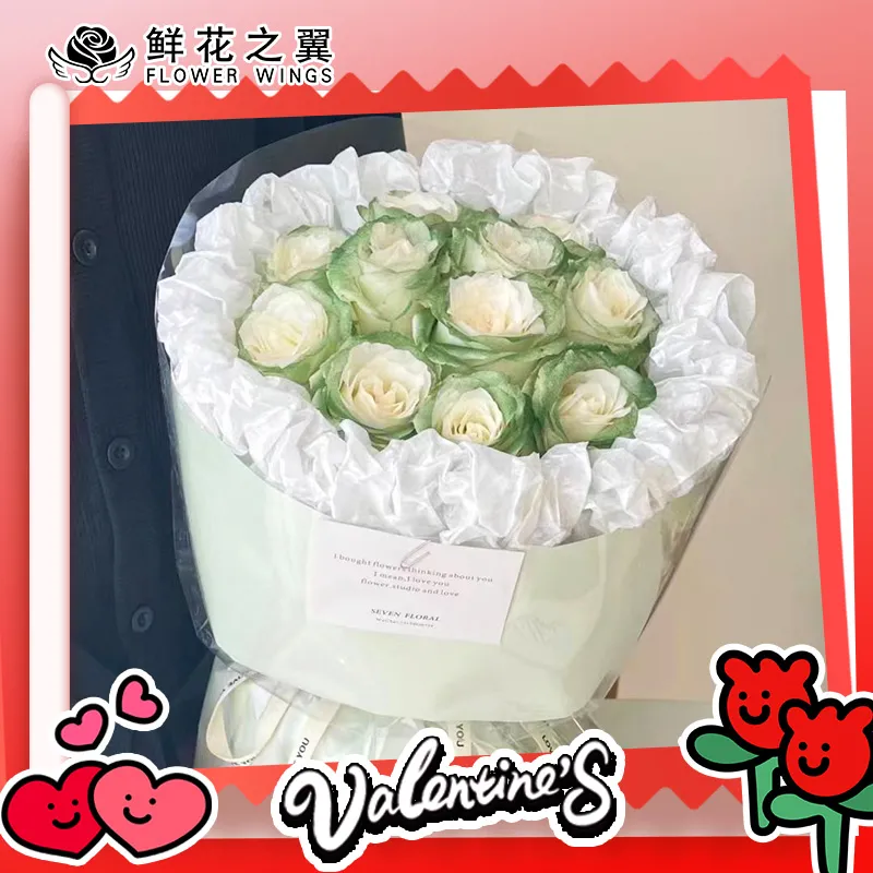 #【追赶春天】11枝苏格兰绿玫瑰花束520鲜花店送男朋友生日礼物圆花束表白玫瑰喷色花束热卖# 这是绿色吗,你这是色盲吧 适合展示