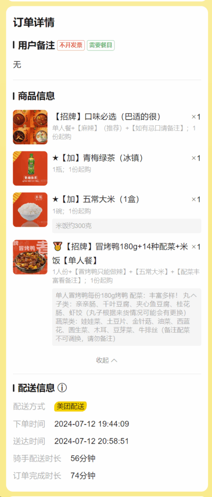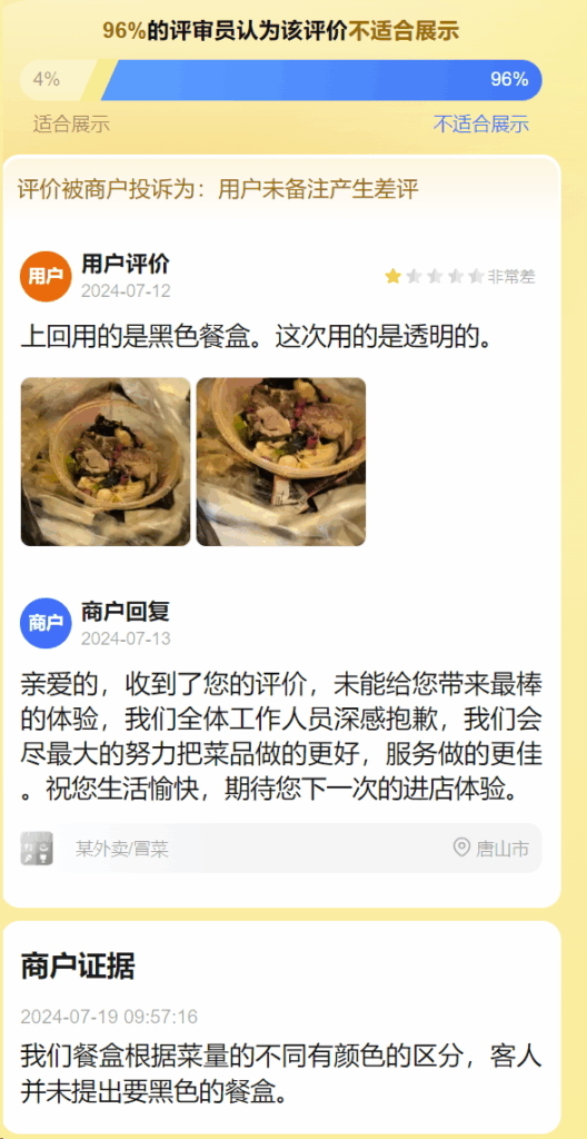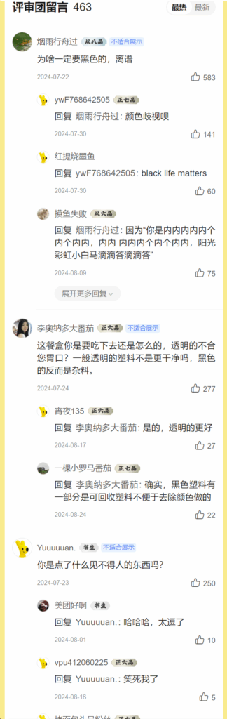 我们餐盒根据菜量的不同有颜色的区分,客人并未提出要黑色的餐盒。