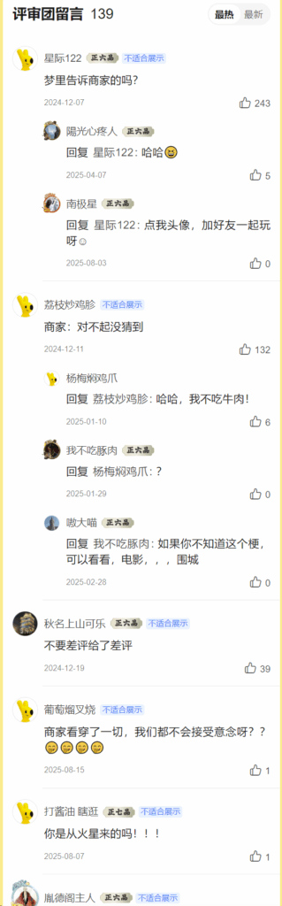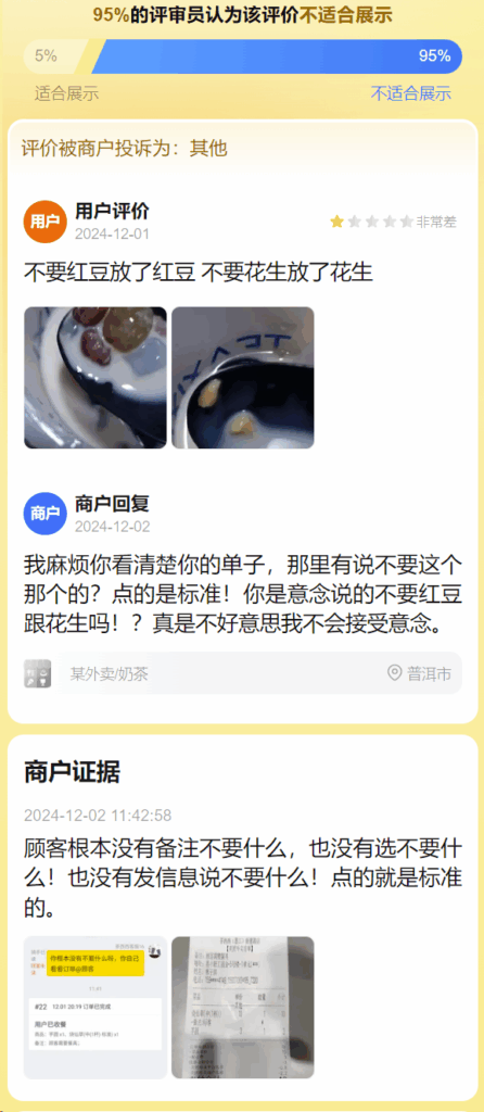评价被商户投诉为:其他