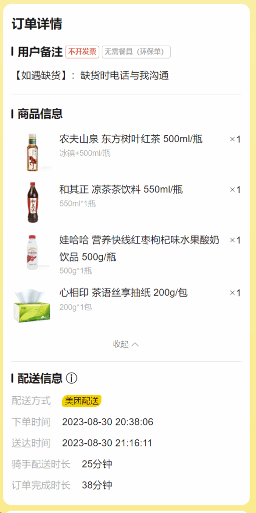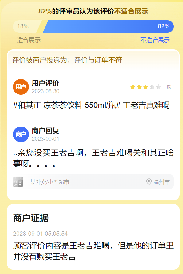 顾客评价内容是王老吉难喝,但是他的订单里并没有购买王老吉