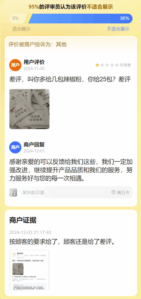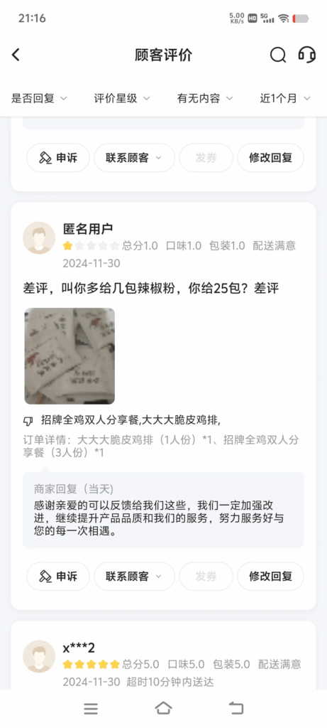 差评,叫你多给几包辣椒粉,你给25包?差评