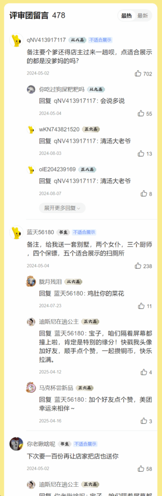 用户点了一份盖饭,但却在备注中要求送10份餐具,小店利润低,无法提供,申请屏蔽这条评价