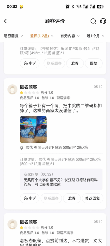 每个箱子都有一个洞,把中奖的二维码都扣掉了,这样的商家太没诚信了。
