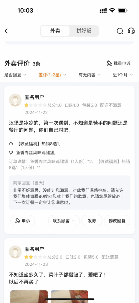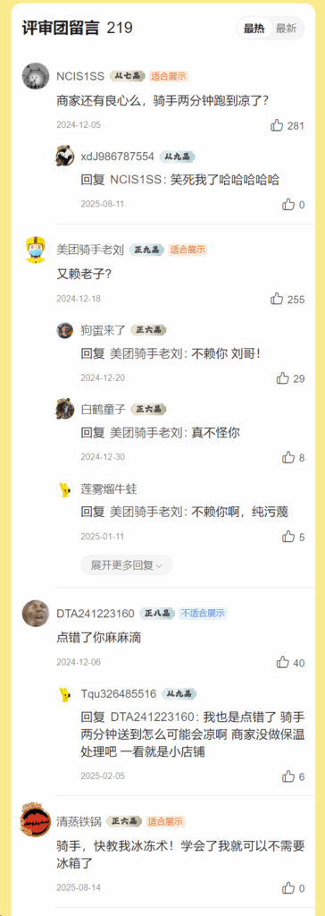商家正常出餐,骑手配送慢导致餐凉,顾客给予差评,申请屏蔽这条评价