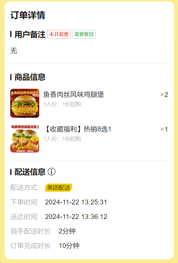 汉堡是冰凉的,第一次遇到,不知道是骑手的问题还是餐厅的问题,你们自己对吧。
