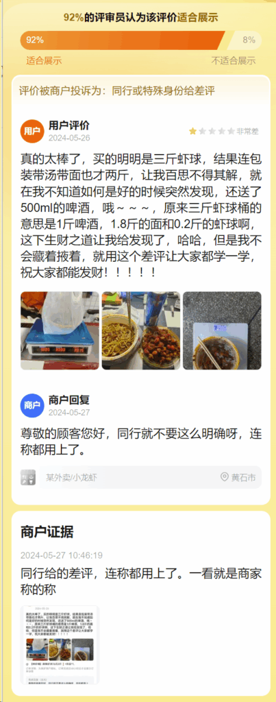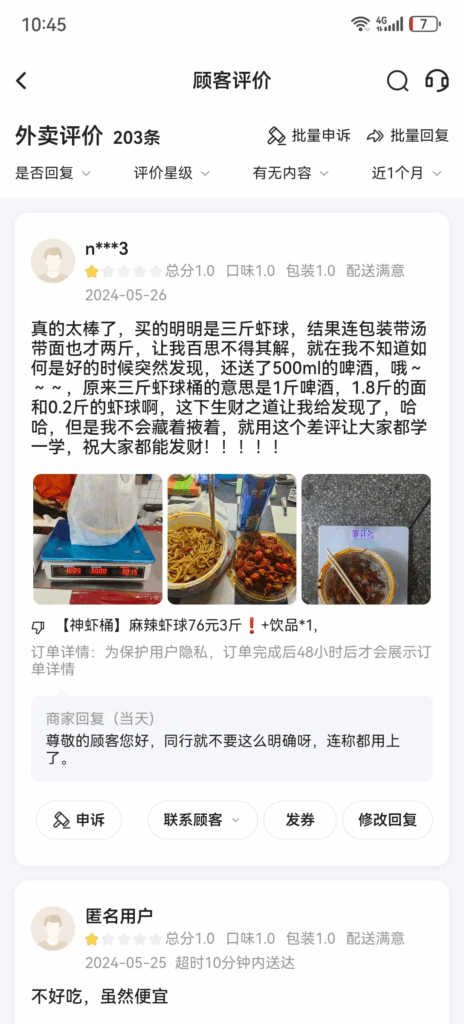 真的太棒了,买的明明是三斤虾球,结果连包装带汤带面也才两斤,让我百思不得其解,就在我不知道如何是好的时候突然发现,还送了500ml的啤酒,哦~~~,原来三斤虾球桶的意思是1斤啤酒,1.8斤的面和0.2斤的虾球啊,这下生财之道让我给发现了,哈哈,但是我不会藏着掖着,就用这个差评让大家都学一学,祝大家都能发财!!!!