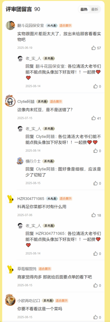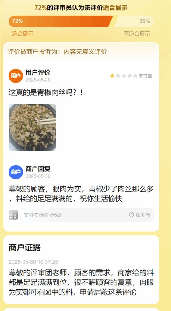 尊敬的评审团老师,顾客的需求,商家给的料都是足足满满到位,很不解顾客的寓意,肉眼为实都可看图中的料,申请屏蔽这条评论