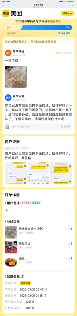 您自己没有发现馄饨下面的汤,给你解释了一下,是放在下面的汤里的,这样就不托一起了,还问我要补偿,我这是能做到防腻最好的方法了,干湿分离的!请问我补偿你什么呢