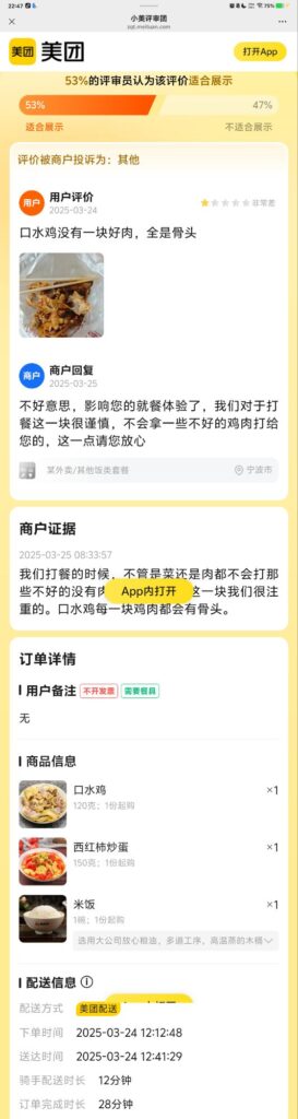 2025年8月16日 适合展示 53%的评审员认为该评价适合展示 用户评价2025-03-24非常差口水鸡没有一块好肉,全是骨头商户回复2025-03-25不好意思,影响您的就餐体验了,我们对于打餐这一块很谨慎,不会拿一些不好的鸡肉打给您的,这一点请您放心