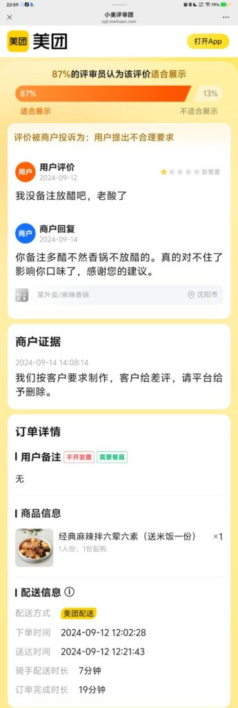 我没备注放醋吧,老酸了 2025年8月16日 适合展示 87%的评审员认为该评价适合展示 用户评价2024-09-12非常差我没备注放醋吧,老酸了商户回复2024-09-14你备注多醋不然香锅不放醋的。真的对不住了影响你口味了,感谢您的建议。
