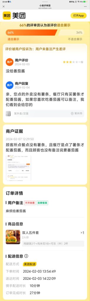 2025年8月16日 适合展示 66%的评审员认为该评价适合展示 用户评价2024-02-03一般没给番茄酱商户回复2024-02-04亲,您点的外卖没有薯条,餐厅只有买薯条才配番茄酱,如果您喜欢吃番茄酱可以备注,我们看到会给您的