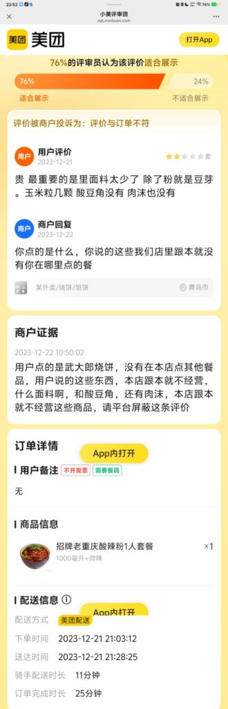 2025年8月16日 适合展示 76%的评审员认为该评价适合展示 用户评价2023-12-21差贵 最重要的是里面料太少了 除了粉就是豆芽。玉米粒几颗 酸豆角没有 肉沫也没有商户回复2023-12-22你点的是什么,你说的这些我们店里跟本就没有你在哪里点的餐