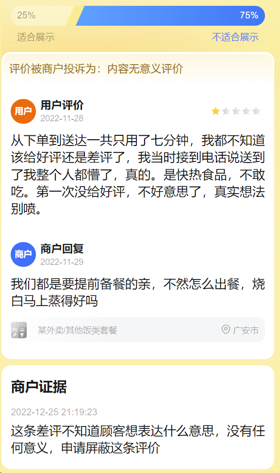 这条差评不知道顾客想表达什么意思,没有任何意义,申请屏蔽这条评价