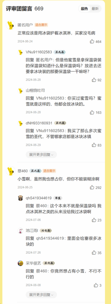 用户点的是圣代和奶昔,没有点冰块。应该是评价错了,申请屏蔽这条评价