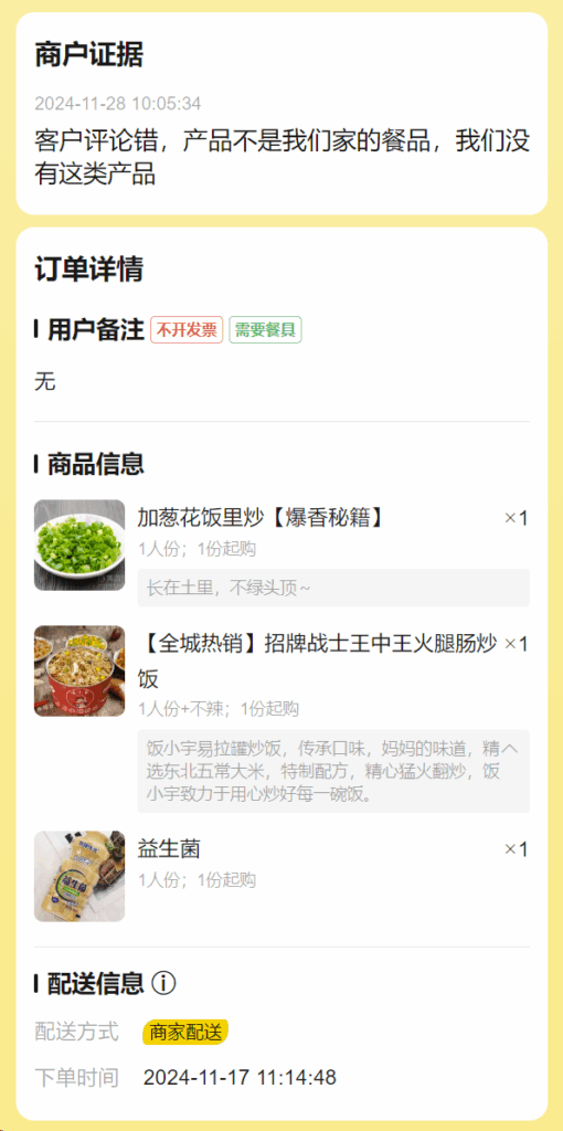 客户评论错,产品不是我们家的餐品,我们没有这类产品