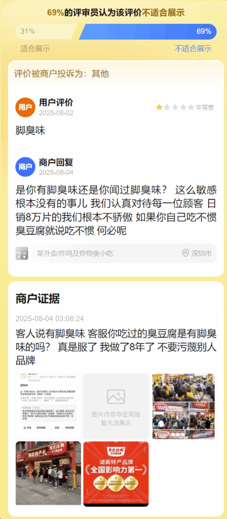 评价被商户投诉为:其他