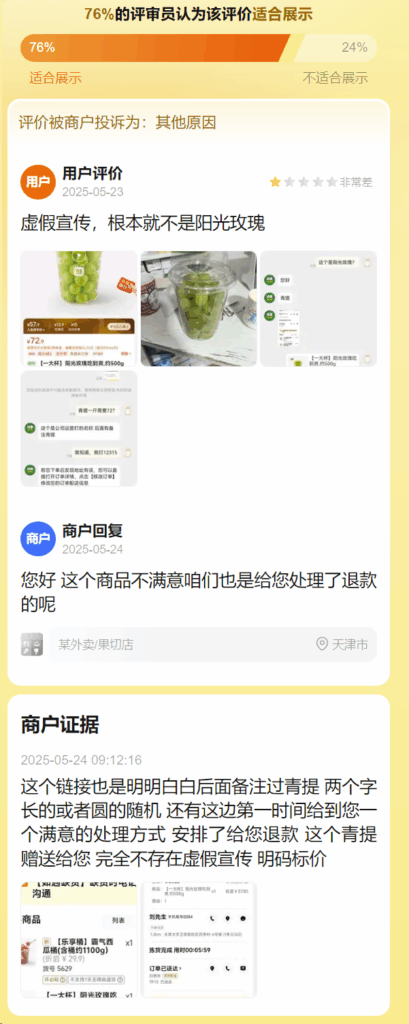 这个链接也是明明白白后面备注过青提 两个字 长的或者圆的随机 还有这边第一时间给到您一个满意的处理方式 安排了给您退款 这个青提赠送给您 完全不存在虚假宣传 明码标价